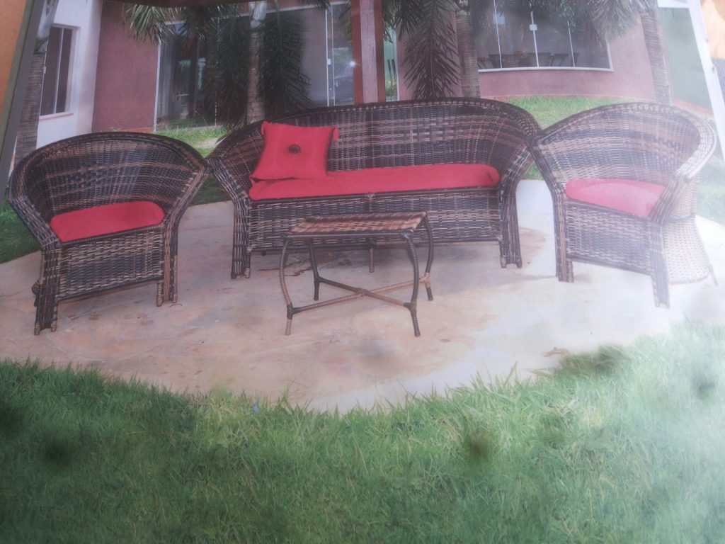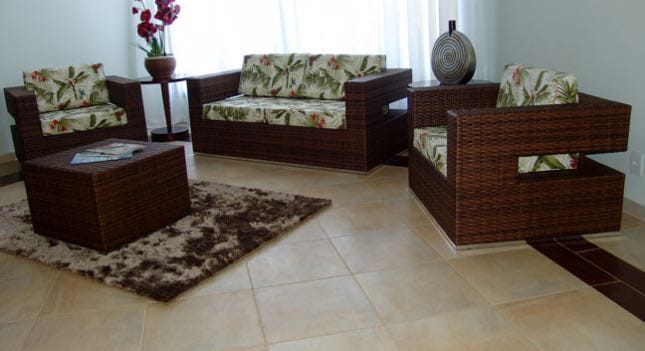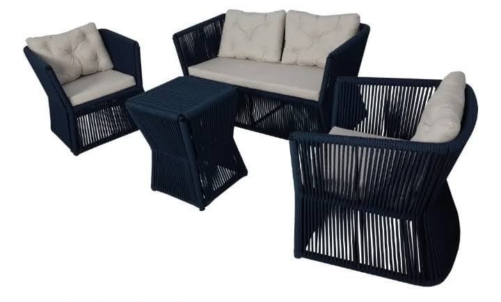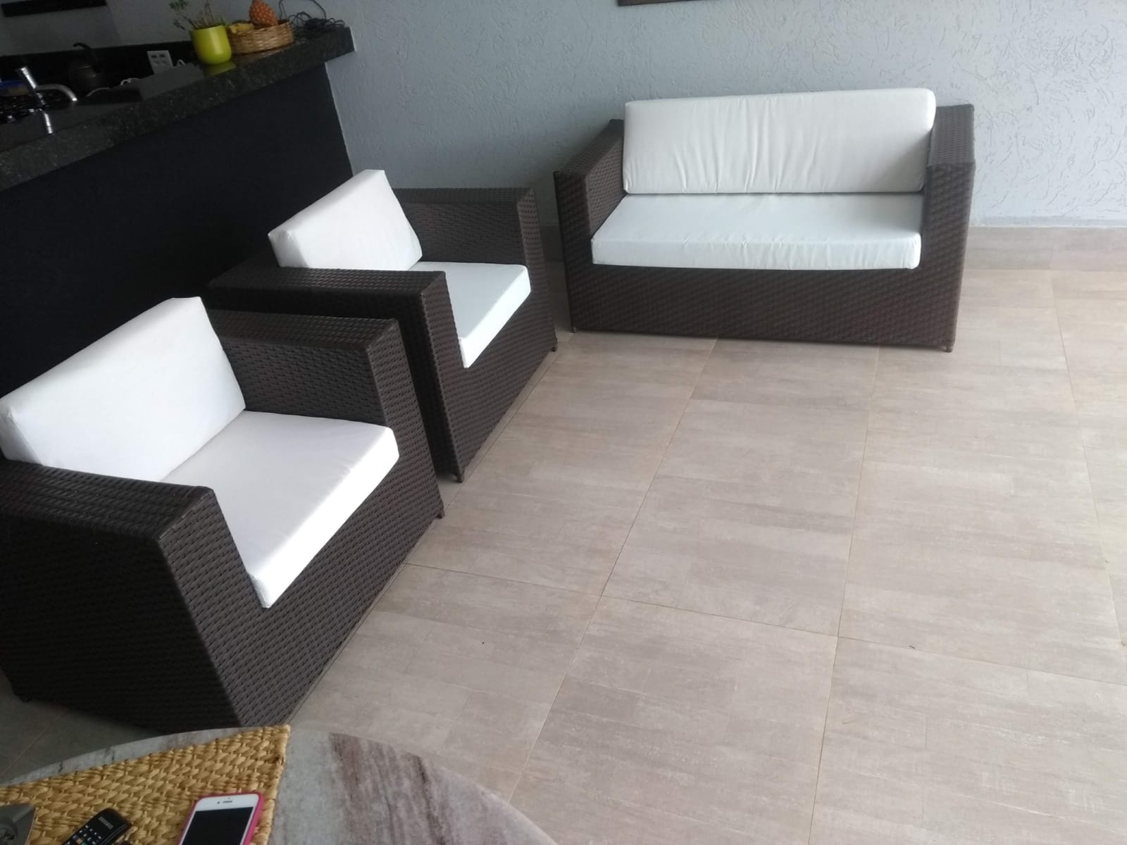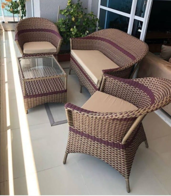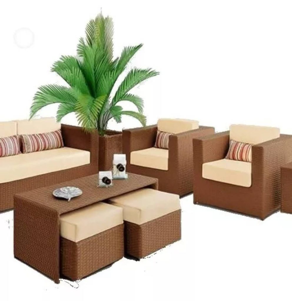 Jogo de sofa 3 lugares com mesinha e puffis central e caxipo lateral