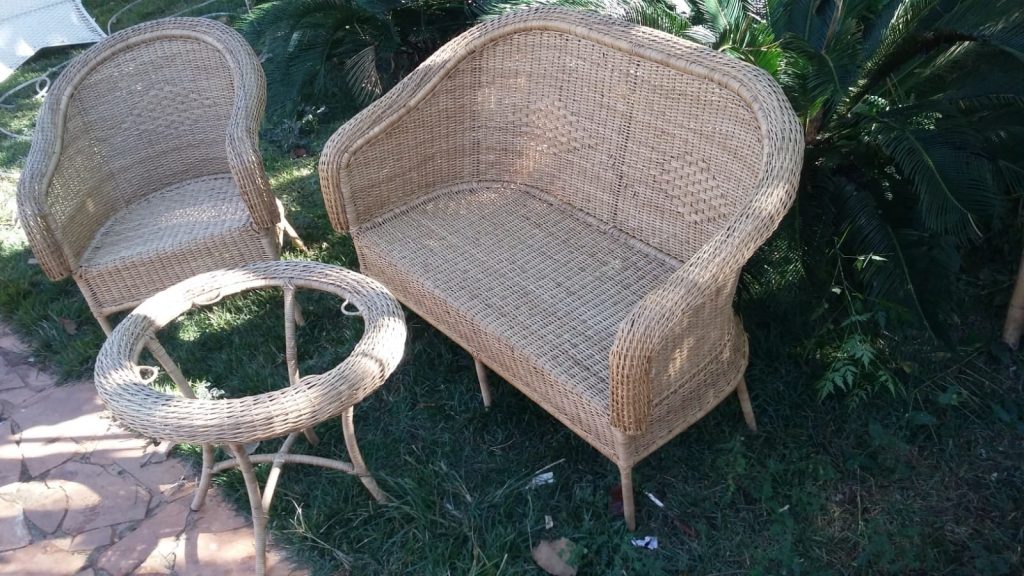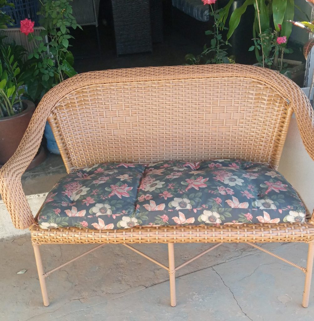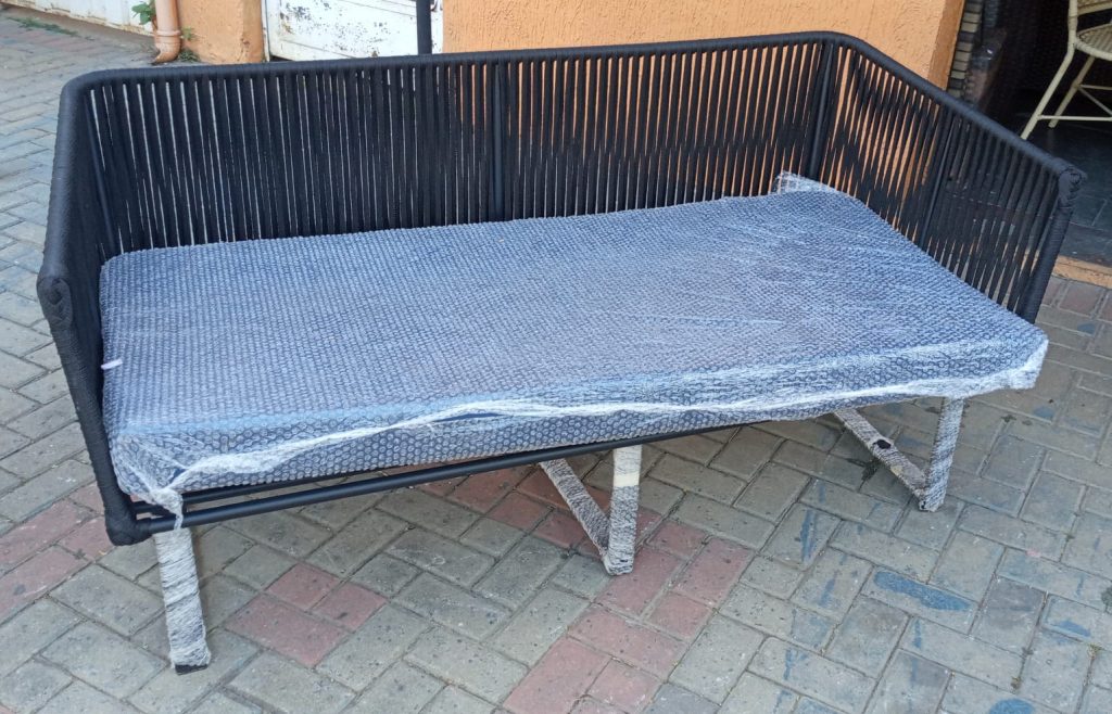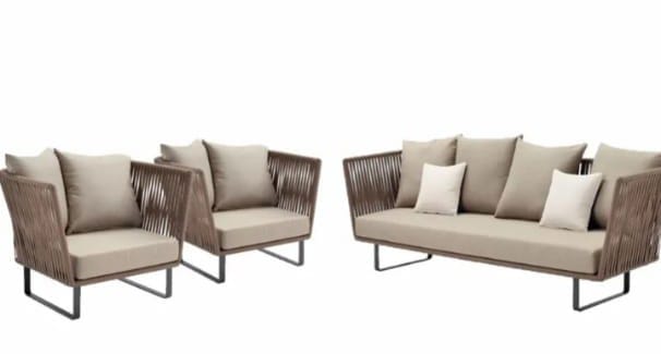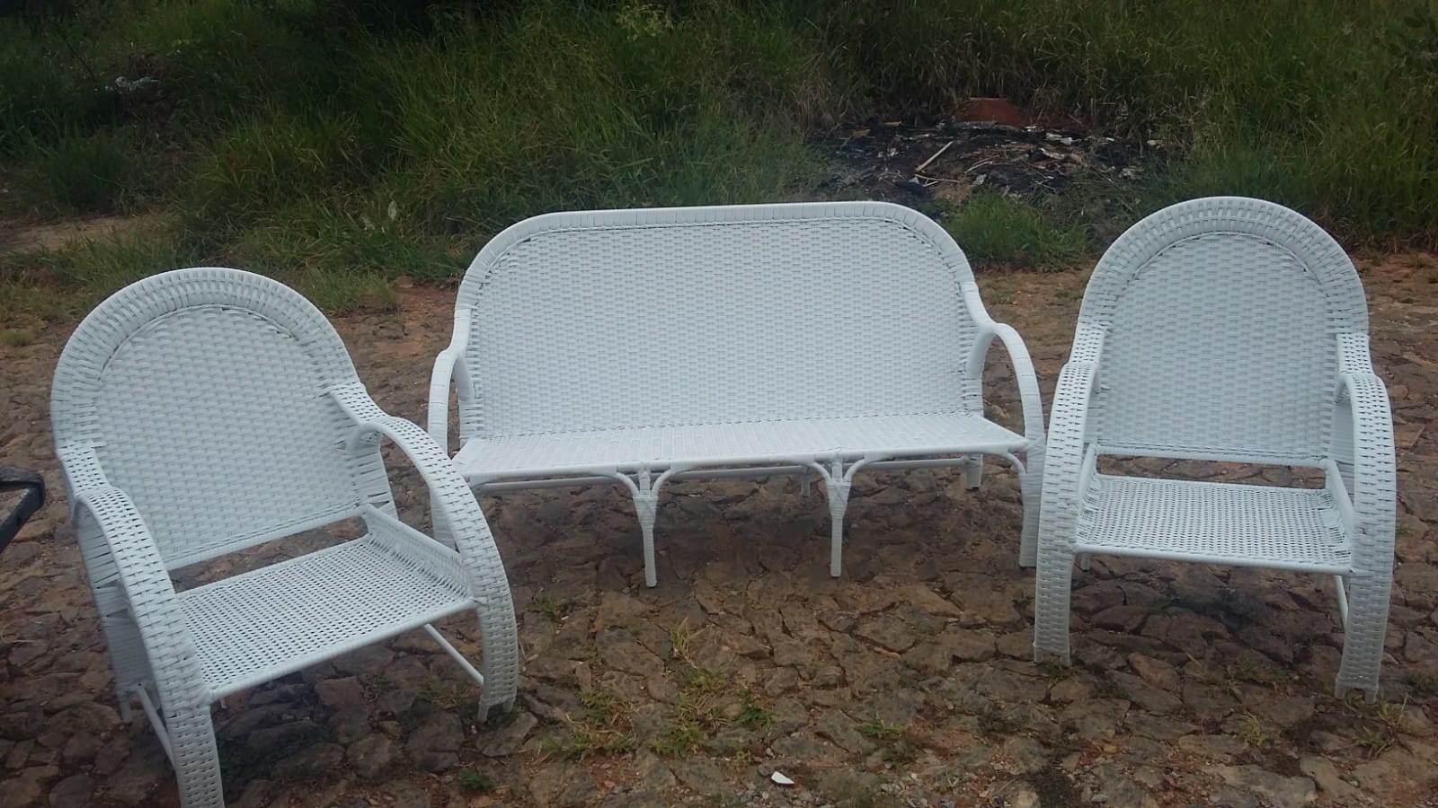 Jogo de sofa 3 lugares com mesinha e puffis central e caxipo lateral